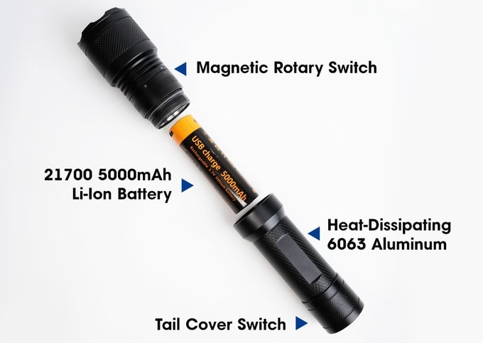 High, Medium, Low, Strobe, and SOS for exploration, emergencies, or signaling over long distances.